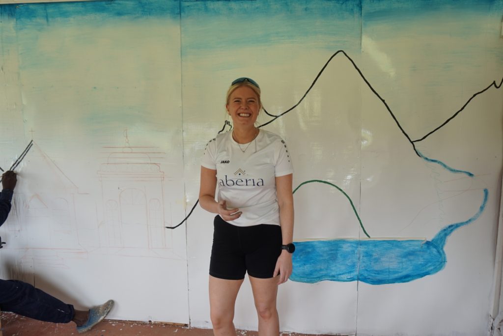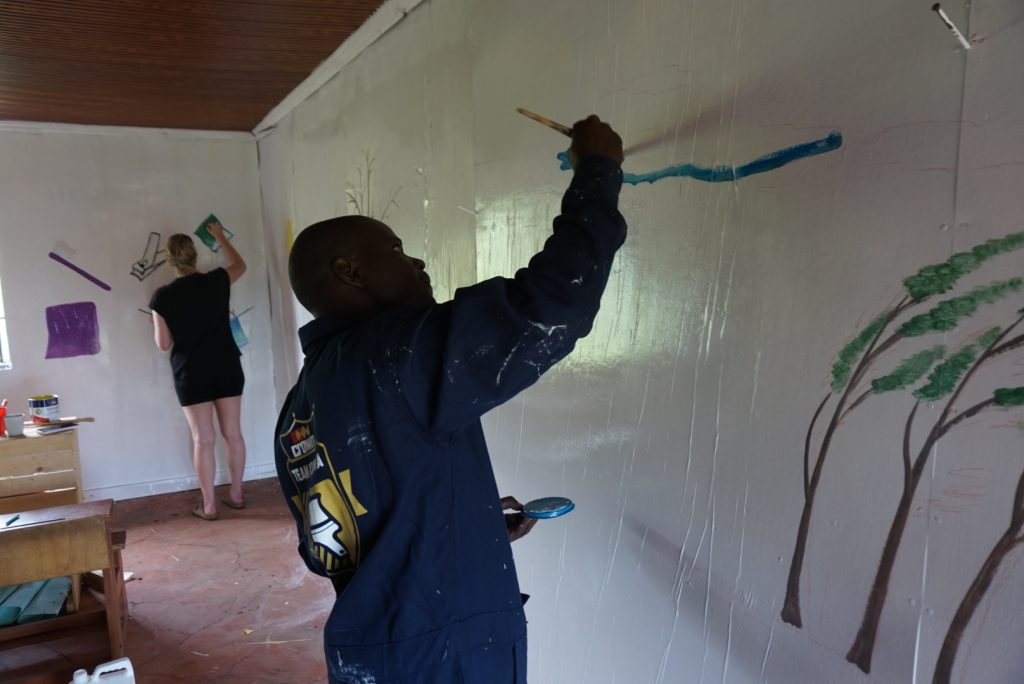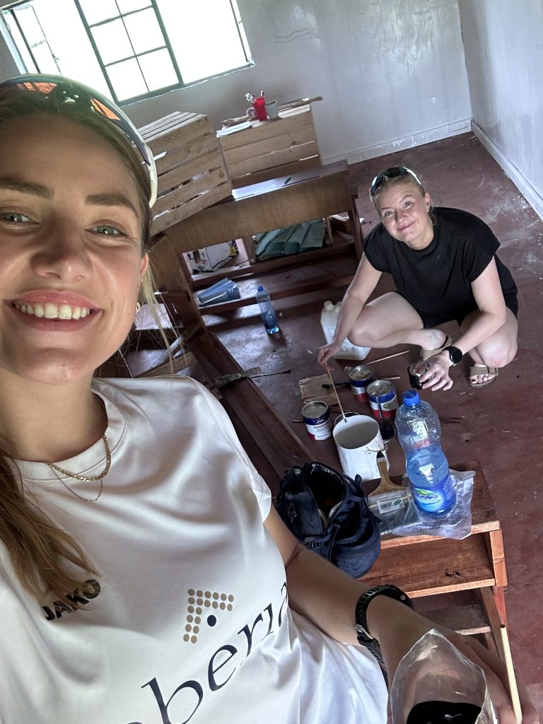 Det tar bare fem minutter å gå fra huset vi bor i til skolen vi jobber på, og når vi kommer dit, blir vi møtt av den lokale maleren Johnson – allerede klar, med et stort smil og malerkosten i hånda. Jeg tror ikke han helt hadde sett for seg at det var to norske jenter som skulle være malerkollegaene hans, men det tar ikke lang tid før latteren sitter løst.